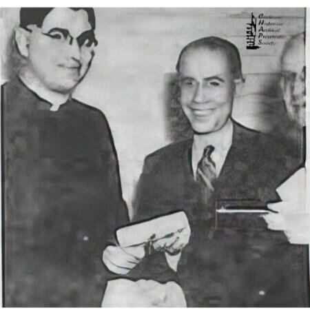 Father Lessard was the founder and publisher of the local paper “The Old Timer” which covered the Cochrane and district news for many years. He also sent it overseas as he felt it was important for the men overseas during WW II to have some news from home and keep up with what was going on.