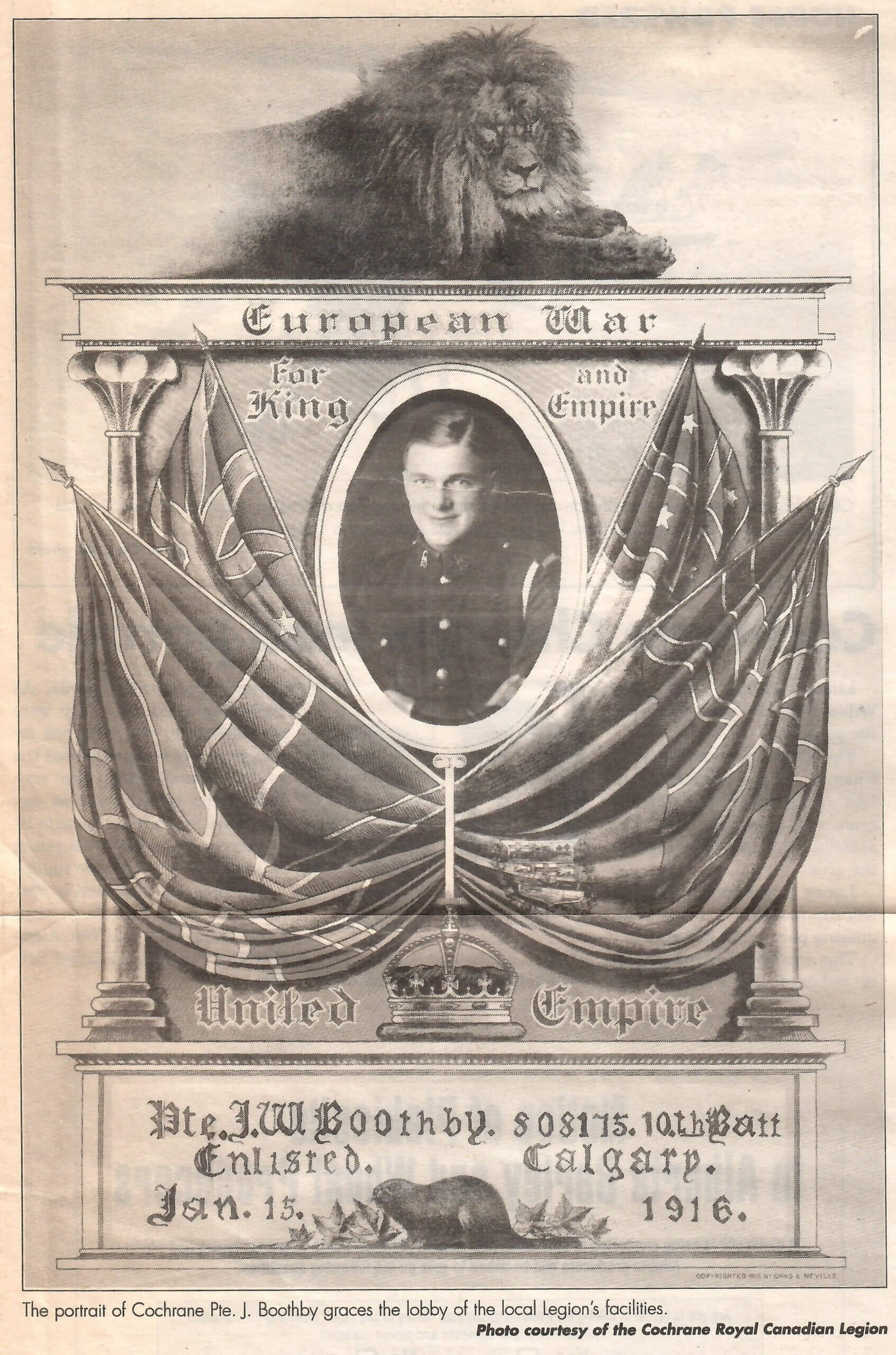 John Boothby came to Cochrane from Cheshire, England. His mother died in 1905 when he was ten years old. His father William, came to Canada soon after his wife died to work at the Cochrane Stone Quarry.