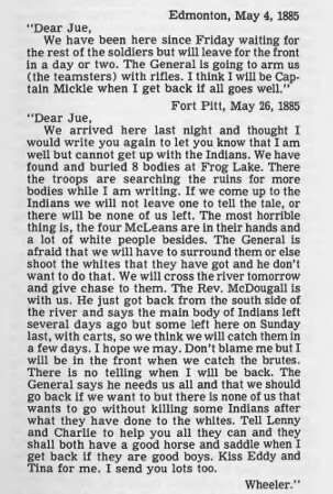 At the outbreak of the Riel Rebellion (sic) in the spring of 1885, Wheeler Mickle, who was known to be an excellent teamster, was hired by General Strange. The Force of General Strange was made up of the 65th Battalion of the Mount Royal Rifles of Montreal, the Winnipeg Light Infantry, a detachment of Mounted Police under Major Steele, cowboy scouts and teamsters.